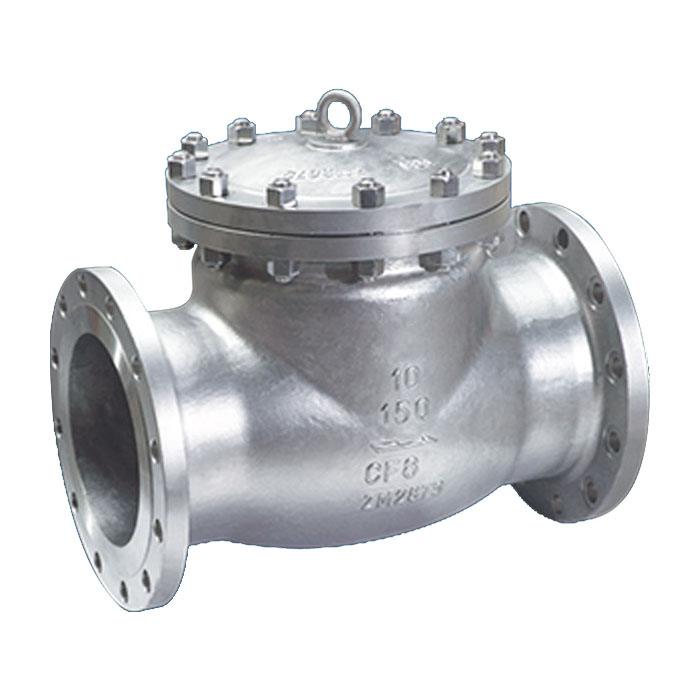 H44H、H44W美标旋启式止回阀是指依靠介质本身流动而自动开、闭阀瓣,用来防止介质倒流的阀门,又称逆止阀、单向阀、逆流阀、和背压阀。止回阀属于一种自动阀门,其主要作用是防止介质倒流、防止泵及驱动电动机反转,以及容器介质的泄放。止回阀还可用于给其中的压力可能升至超过系统压的辅助系统提供补给的管路上。止回阀主要可分为旋启式止回阀(依重心旋转)与升降式止回阀(沿轴线移动)。这种类型的阀门的作用是只允许介质向一个方向流动,而且阻止方向流动。通常这种阀门是自动工作的,在一个方向流动的流体压力作用下,阀瓣打开;流体反方向流动时,由流体压力和阀瓣的自重合阀瓣作用于阀座,从而切断流动。